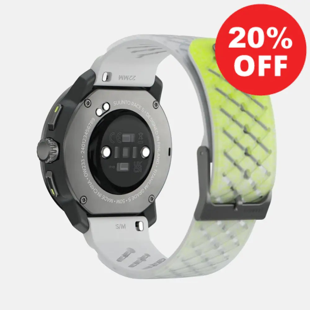 Suunto Race S has a sleek, smooth look to suit different styles, and a smaller, compact fit. With its lighter weight, it adds comfort in races, training and everyday.
